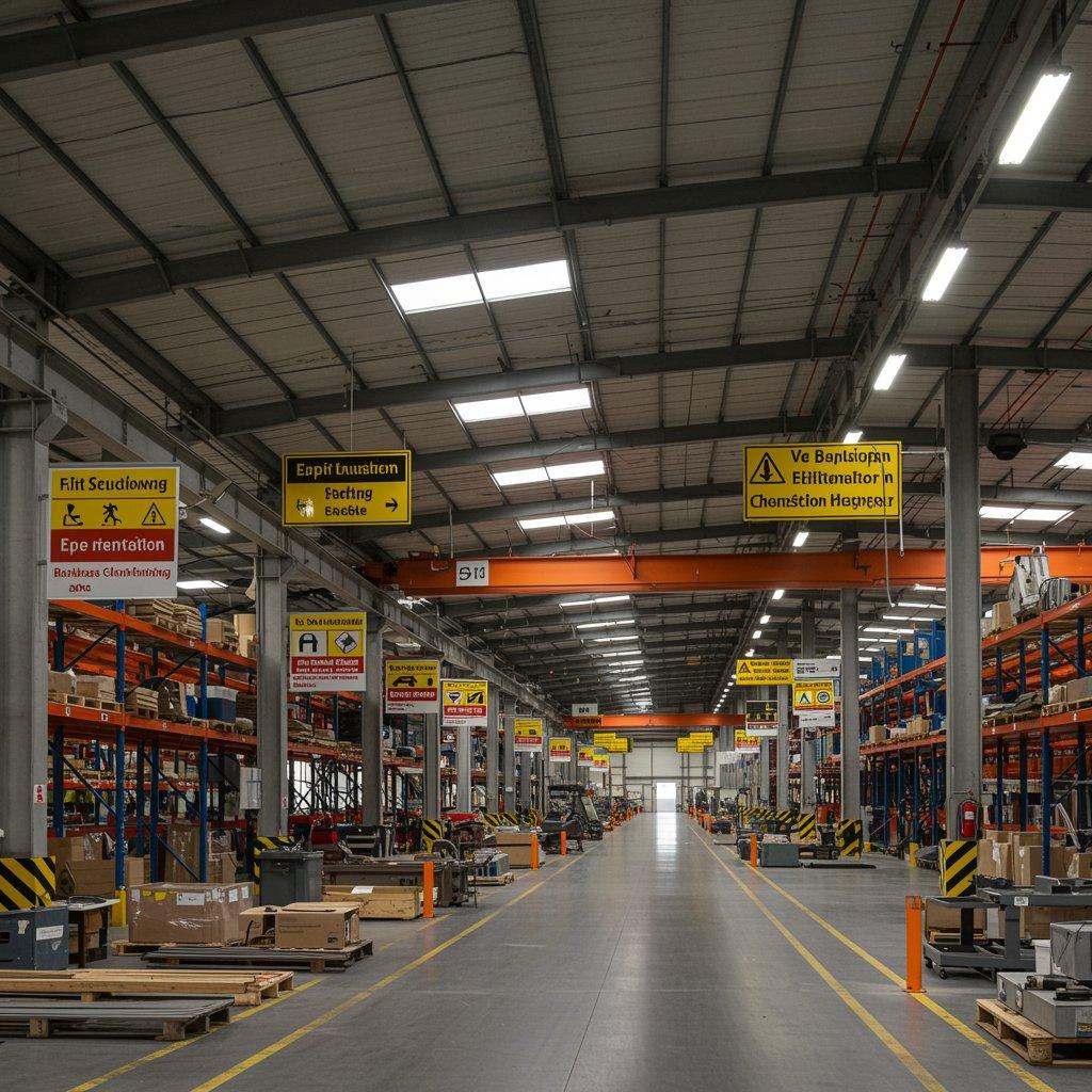 Profesjonalne oznakowanie magazynu, wszystko zgodne z normami.
